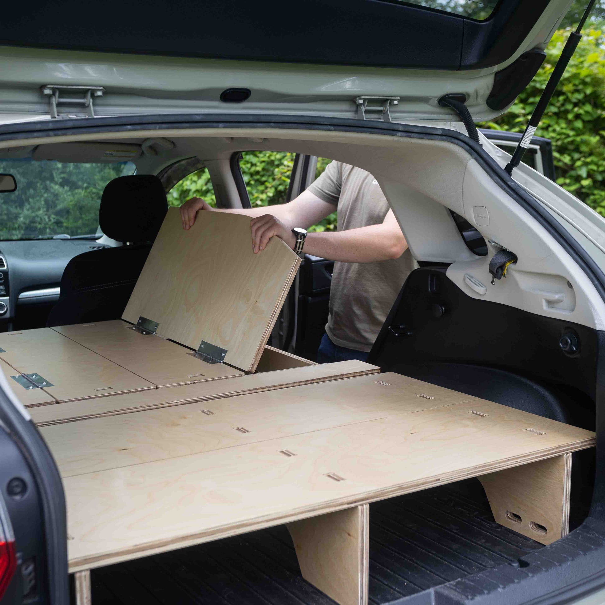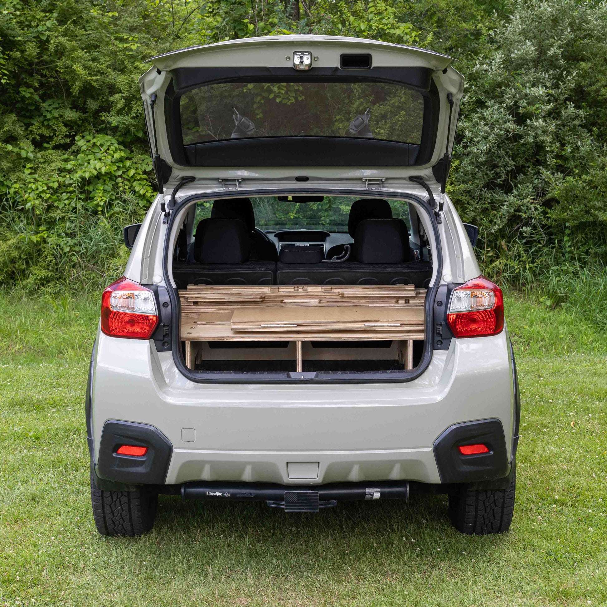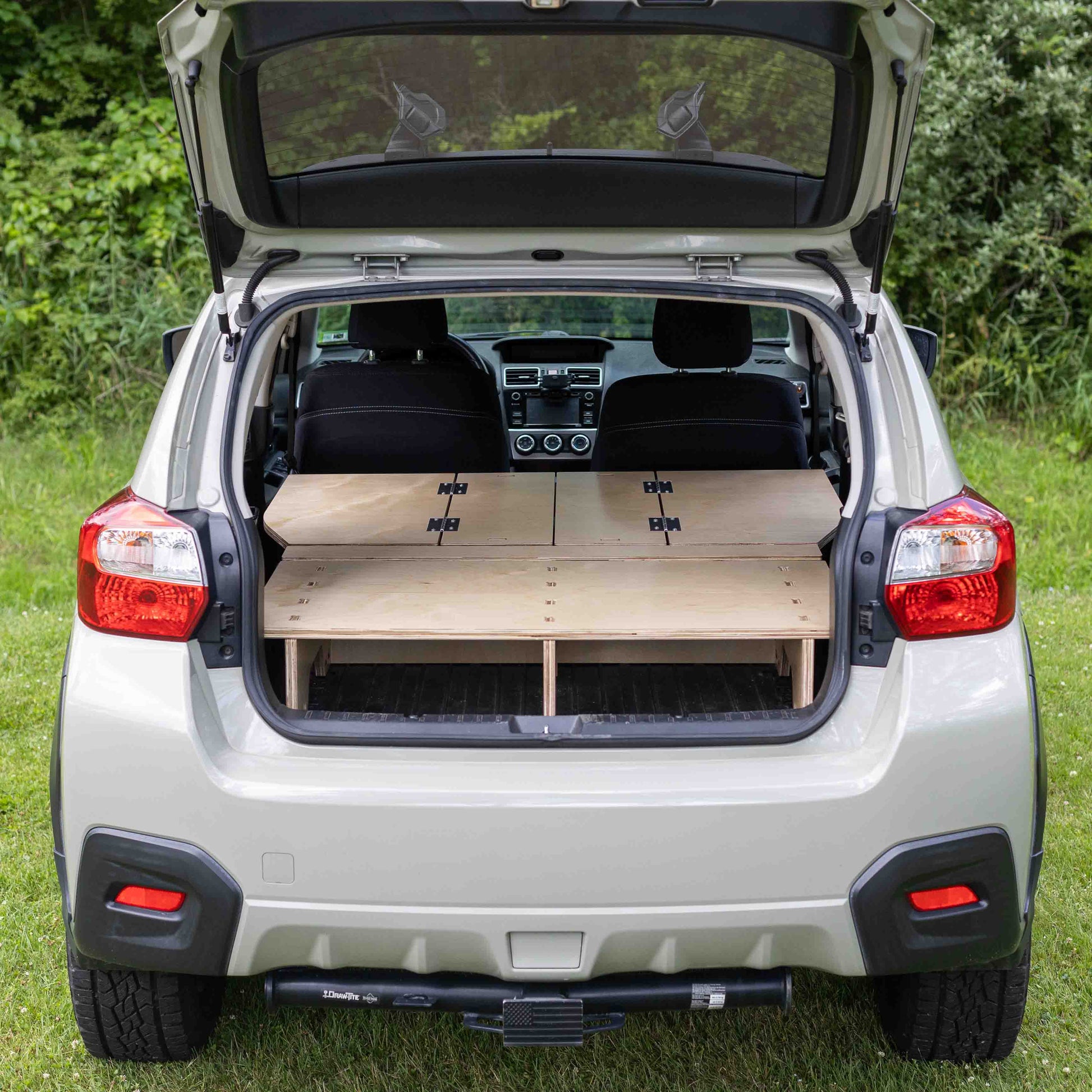 This Sleeping Platform is designed to flatten out and extend the sleeping space in the Subaru Crosstrek, while also adding easy to access storage space underneath. There are no tools required for assembly, and it can be fully setup in as little as five minutes.
