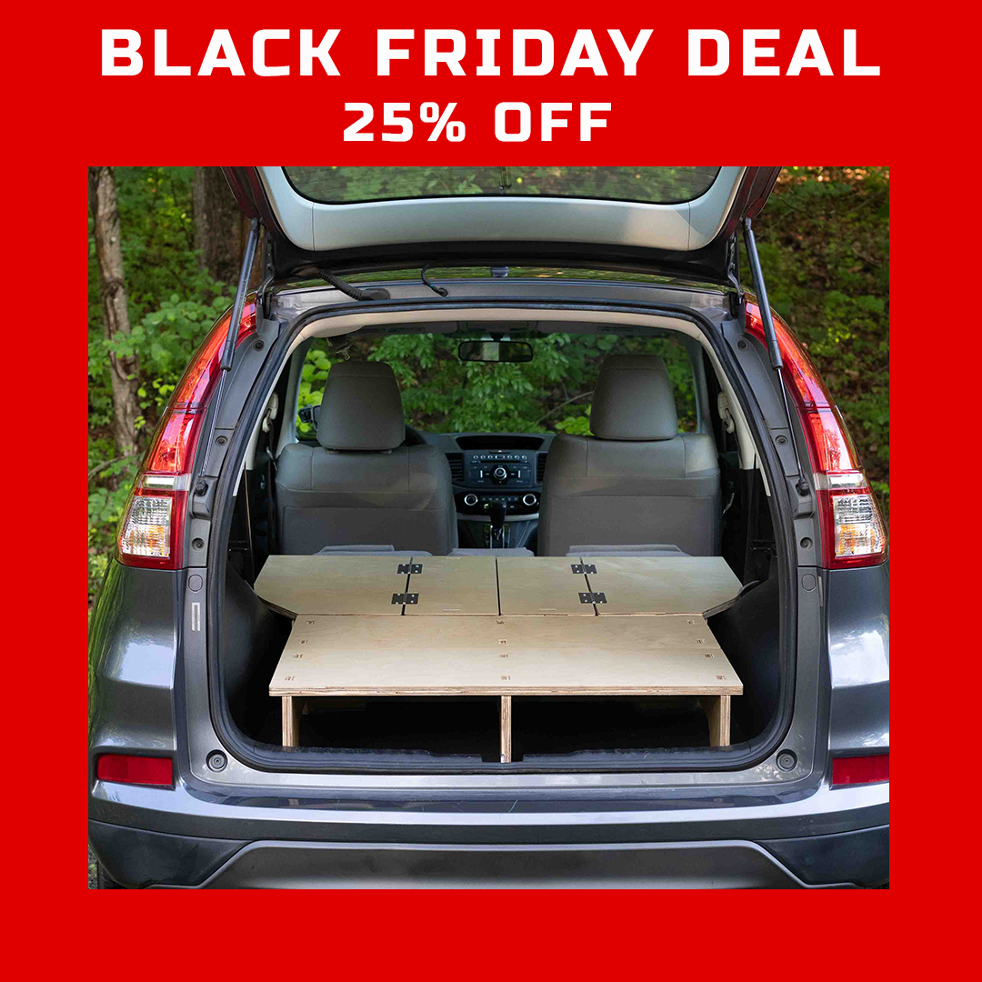 This adjustable vehicle Sleeping Platform is designed to create a flat space to comfortably sleep in your car and add easy to access storage space underneath.